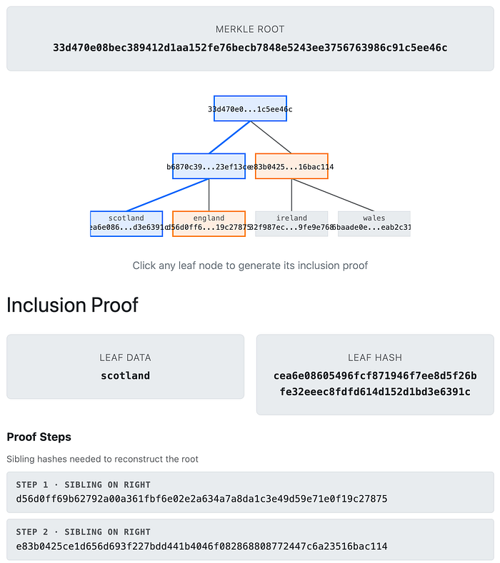 如果我们使用 Merkle Tree 可视化工具 [ 此处],我们会得到: