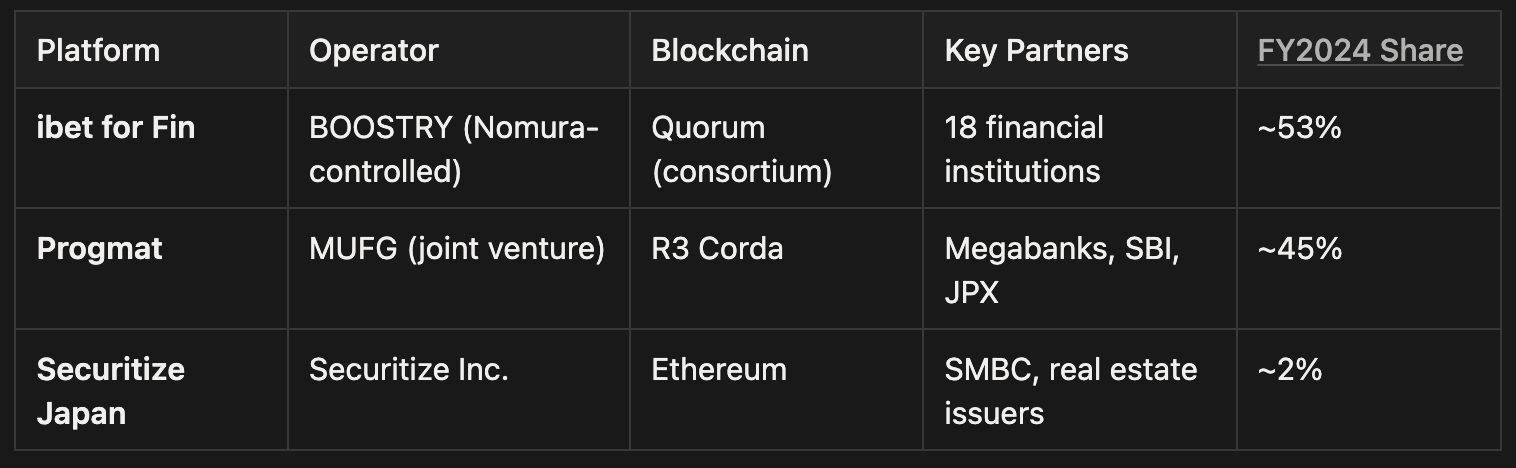 两个平台主导了日本的证券型代币发行市场,每个平台都得到了相互竞争的巨头银行生态系统的支持: