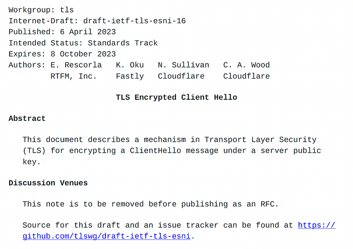 TLS 连接本应是安全并经过隧道传输的,但在最初协商时,通过 Client Hello 我们会暴露服务器名称,而任何监听我们网络数据包的人都能看到它。
