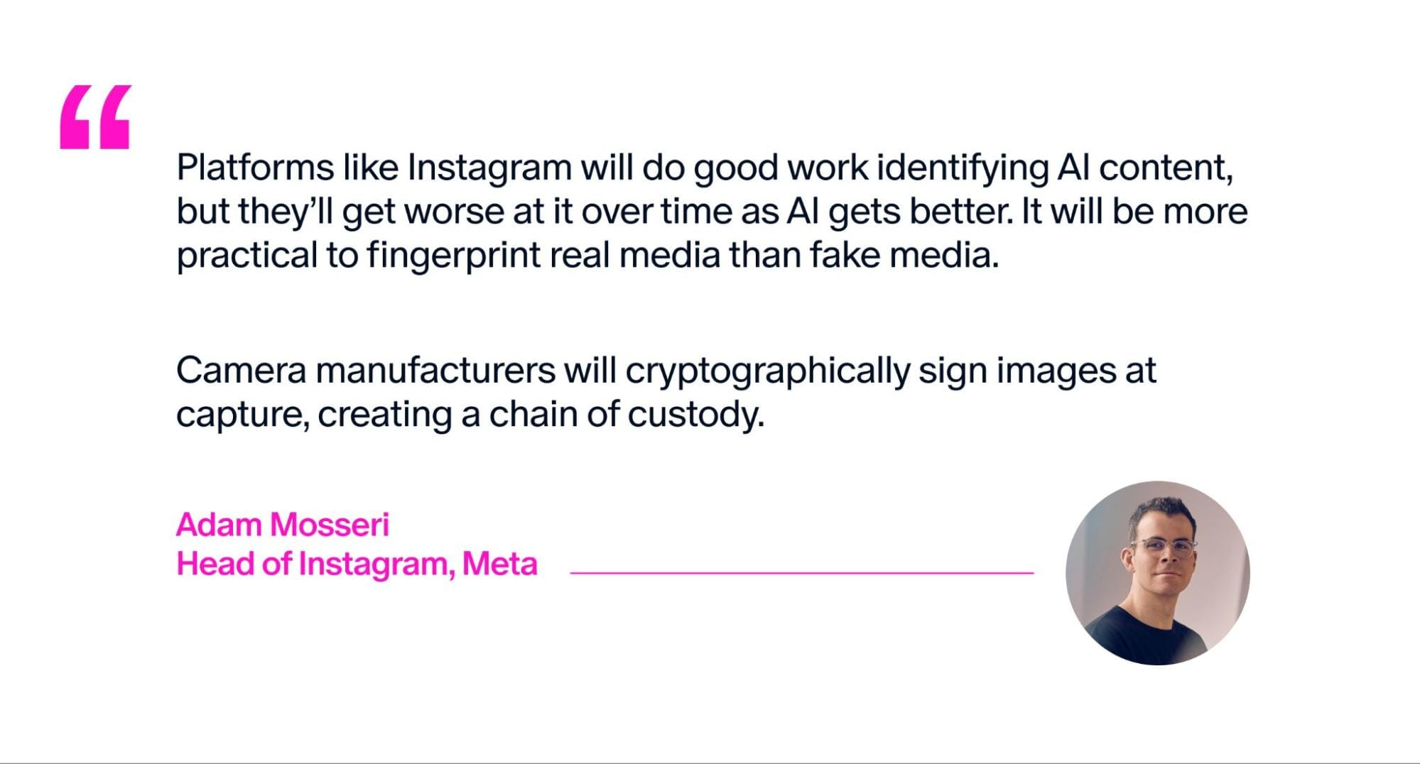 互联网中的真实性也是同样的结构性问题。每一份内容——图像、视频、文本、文件——都应该携带一份经过验证的来源记录,并原生嵌入其中,这样观看者就不必信任平台或创作者。