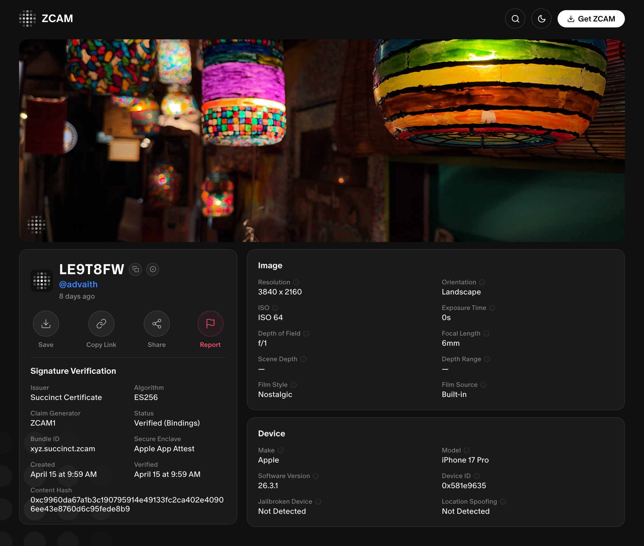 你现在就可以在 iOS App Store 上下载 ZCAM。拍一张照片,分享它,并在 zcam.succinct.xyz 证明它是真实的。
