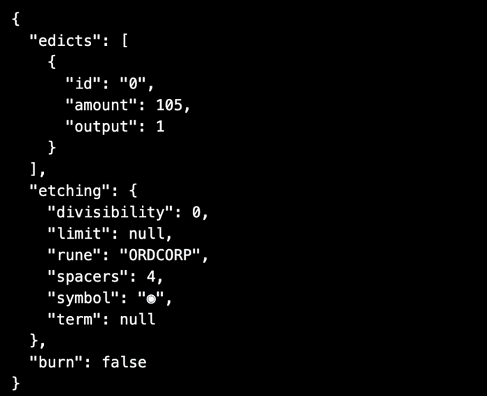 如果在协议消息之后有第二个数据输出,则该交易会为 Runes token 创建一个交易。这部分的数据输出将被解码为两个整数,SYMBOL 和 DECIMALS。如果有更多的其他整数,则无效。SYMBOL 相当于 BRC-20 的 Ticker,即 token 名称。它最多支持 26 个字符,可用字符仅为 A-Z。DECIMALS 是精度,它决定了 Runes token 可以支持多少位小数。如果 SYMBOL 尚未被使用,Runes token 将被分配一个 ID 号。创建的第一个“rune”Token ID 号为 1。BITCOIN、BTC 和 XBT 这三个名称被禁用。在 Runes 协议中,仍然不支持创建具有相同名称的 token。