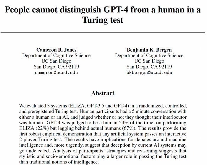 [2] Jones, C. R., & Bergen, B. K. (2025). Large language models pass the turing test. arXiv preprint arXiv:2503.23674.