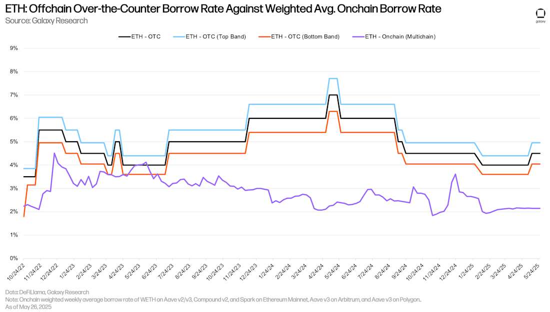 ETH 场外交易借款利率与加权平均链上借款利率