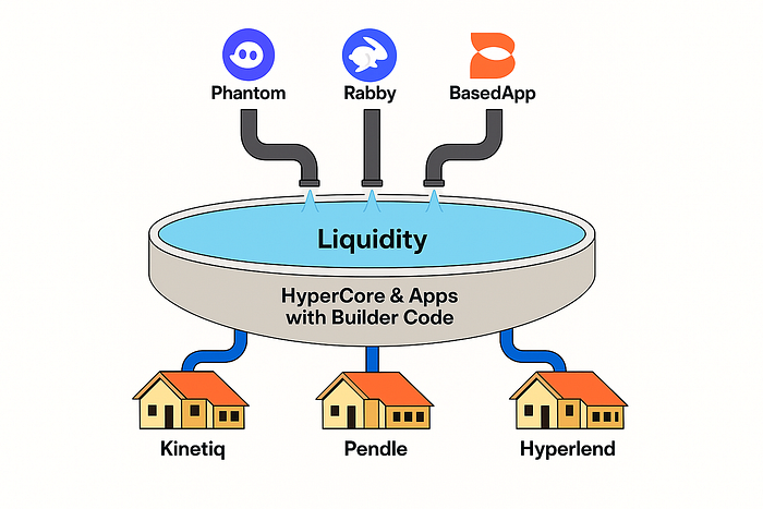 将 HyperCore 视为水库。建设者代码应用程序是向其中注水的管道。水库周围是城镇,即 HyperEVM 上的应用程序。他们不必挖掘自己的水井并希望找到水,而是可以直接接入水库。他们可以立即获得充足的流动性。