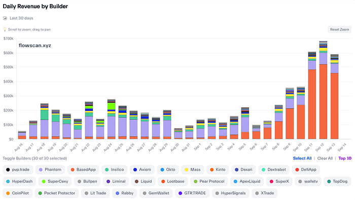 结果不言自明。pvp.trade(750 万美元)、Phantom(500 万美元)、BasedApp(310 万美元)、Insilico(160 万美元)和 Axiom(130 万美元)等项目都从建设者代码中赚取了数百万美元的收入。