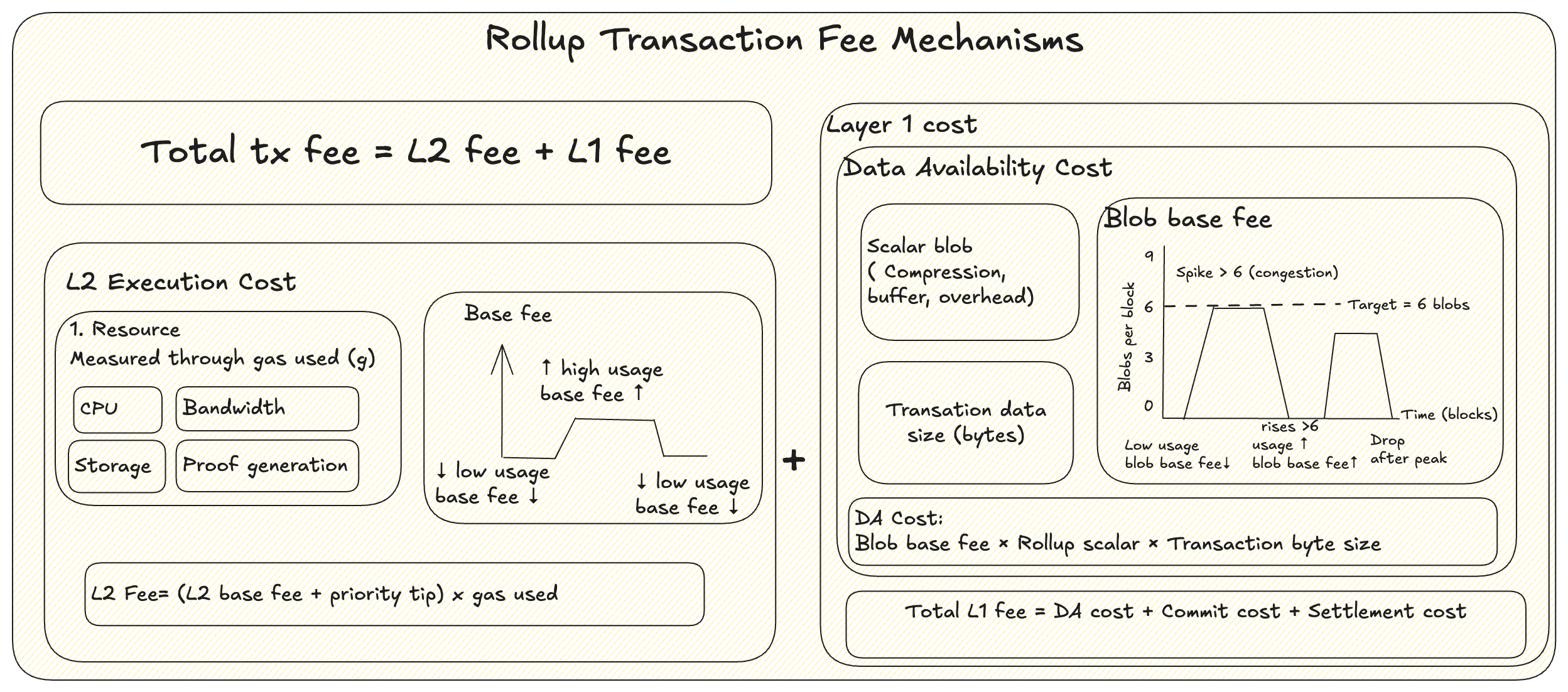 L1 数据可用性成本 – 这是 rollup 为将批次的压缩交易数据作为 blob 发布到以太坊而支付的费用。它确保以后任何人都可以验证 rollup 的状态。