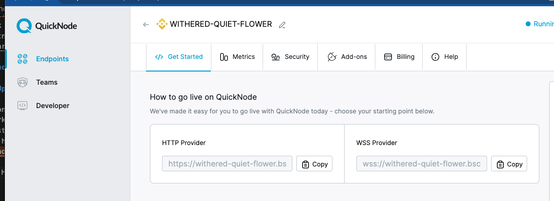 要在 BNB 智能链测试网上构建,你需要一个 API 终端节点来连接到网络。 欢迎使用公共节点或部署和管理你自己的基础设施;但是,如果你想要更快的响应时间,你可以将繁重的工作留给我们。 在此处注册一个帐户。