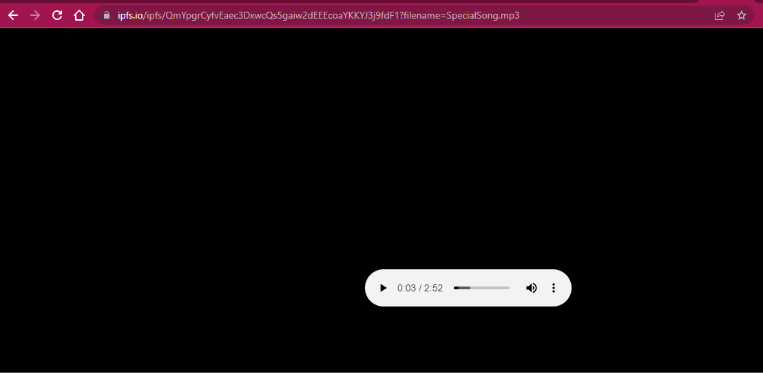 ipfs add <PATH_TO>/SpecialSong.mp3