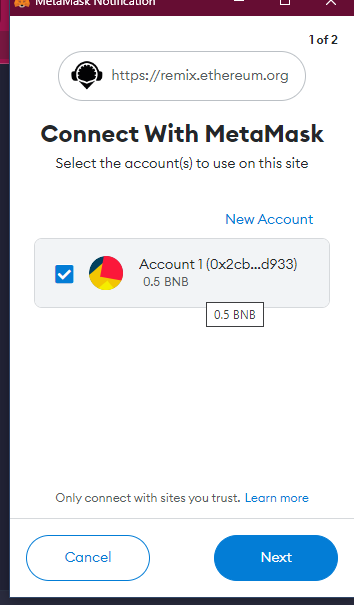 将你的环境设置为“Injected Web3”,然后选择 Smart Chain Testnet Wallet Metamask。