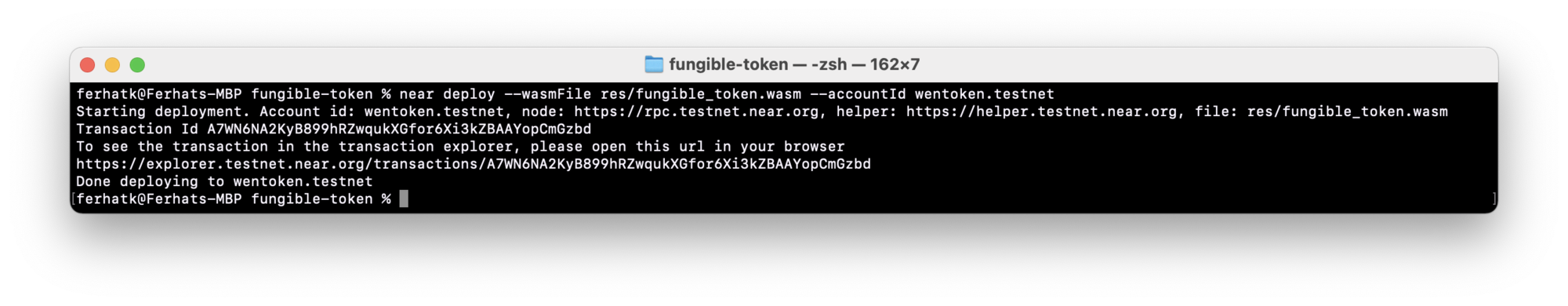 near deploy --wasmFile res/fungible_token.wasm --accountId YOUR_ACCOUNT_ID.testnet