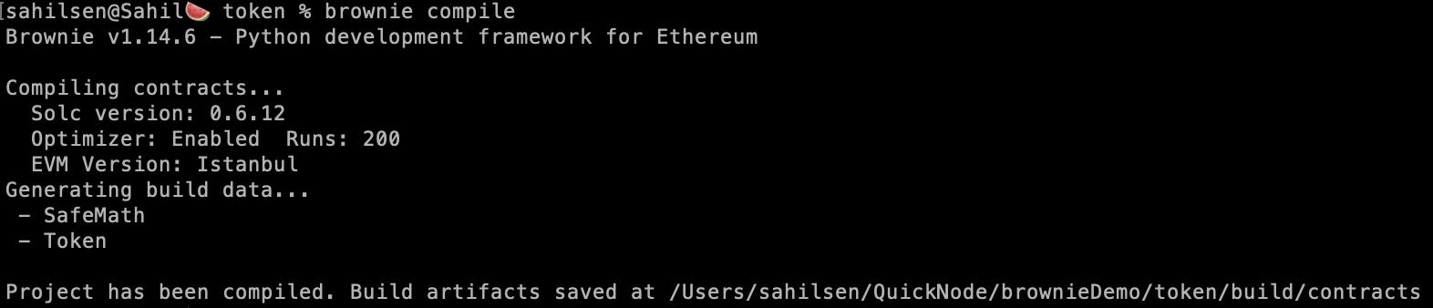 在部署合约之前,我们需要使用以下命令对其进行编译: