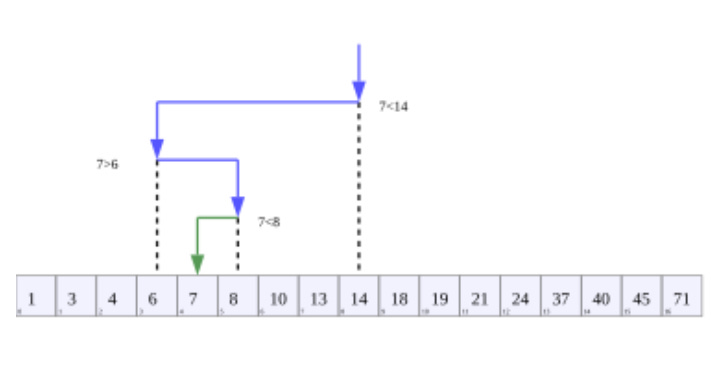 假设你总是问“你的角色名称是否在 [剩余角色名称的中位数] 之前按字母顺序排列?”而不是问“你的角色是否戴眼镜?”。这是一个 二分查找,它将最大化每个问题的答案的信息量:在每个步骤中,中间名称划分剩余的字符集,并且该问题消除两个一半中的一个。重复地将剩余的候选对象减半将尽可能快地缩小搜索范围,只需要对数数量级的步骤,这比线性扫描(即逐一检查:“是 Alice 吗?不是?Bob 怎么样?……”)快得多。