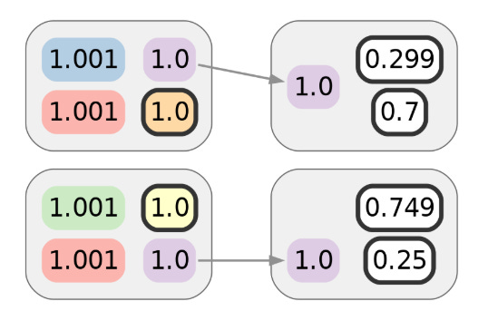 在比特币中,coin 的匿名集的一个自然定义是可以 plausibly merged 该 coin 的 wallet clusters 集合(参见 前几篇 文章)。如果候选集群超过一个,则匿名集是非平凡的,在这种情况下,合并将取决于获得额外的信息。新的交易可能会引入不确定性,从而需要为无法合并到任何现有集群的输出创建新的集群(尚未)。另一方面,新的交易和链外信息也可以消除不确定性并促进集群的合并。最常见的是,如果多输入启发式被认为对这种新交易有效,那么输入 coin 的集群将被合并。然而,正如我们之前看到的,存在许多启发式方法,其中一些方法非常准确。