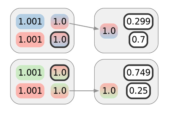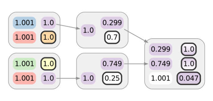 CoinJoin 隐私背后的直觉是,由于属于不同用户的多个输入用于创建看起来都相同的输出,因此无法将任何一个输出链接到特定的输入。这有点类似于混合网络,其中每个 CoinJoin 交易都是一个中继,而混合的“消息”就是 coin 本身。这种类比非常简单,在实现 CoinJoin 时存在许多导致其崩溃的复杂情况,但我们将在这篇文章中忽略这些细微差别,并相信 Alice 选择的 CoinJoin 钱包,并假设 Alice 始终可以成功地将一个输入花费到每个 CoinJoin 中,并且这会导致她与 CoinJoin 其他参与者的资金的完美混合。在这些假设下,如果 CoinJoin 交易中存在 k 个等效输出,并且输入存在 k 个单独的集群,那么创建此交易时,每个输出的匿名集应具有 log₂(k) 位的熵。