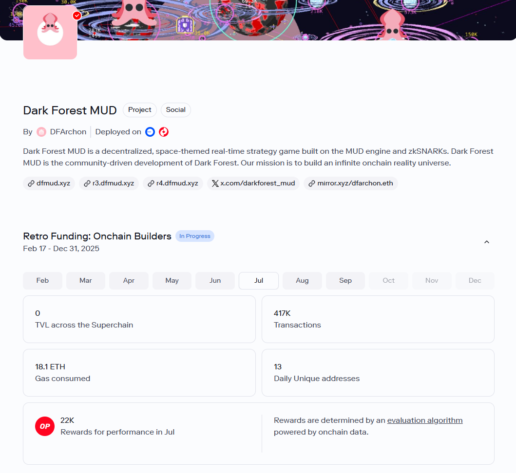 • Dark Forest MUD:全链游戏先驱,凭借技术创新,获得超 3.3 万 OP 奖励。