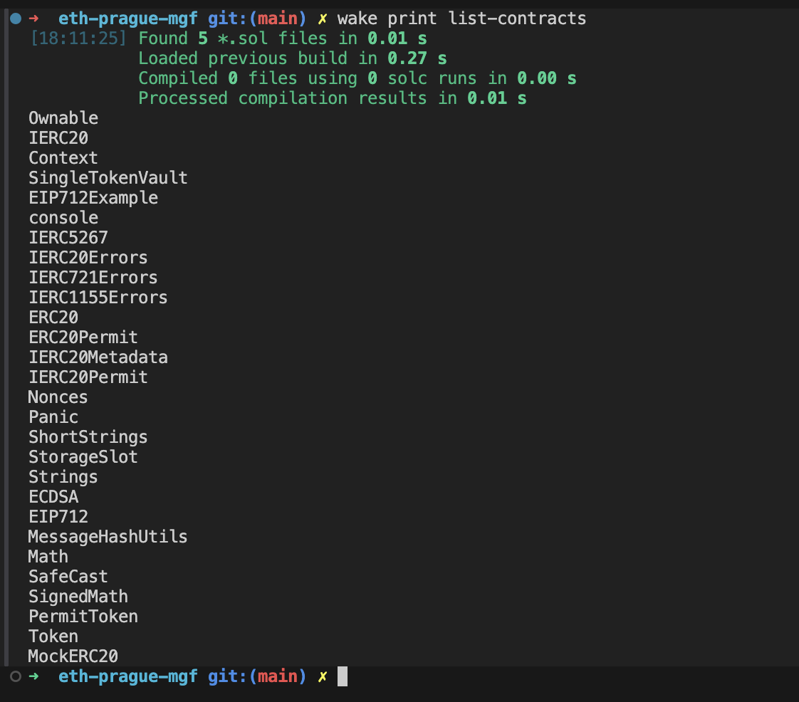 在继续之前,请通过运行以下命令检查 Wake 是否成功编译你的项目: