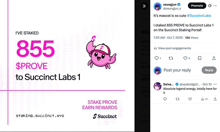 我个人也在 Succinct 中进行质押。作为一名研究员和投资者,我试图简化困难的计算机科学和代数概念,以便尽可能多的投资者能够理解它们。