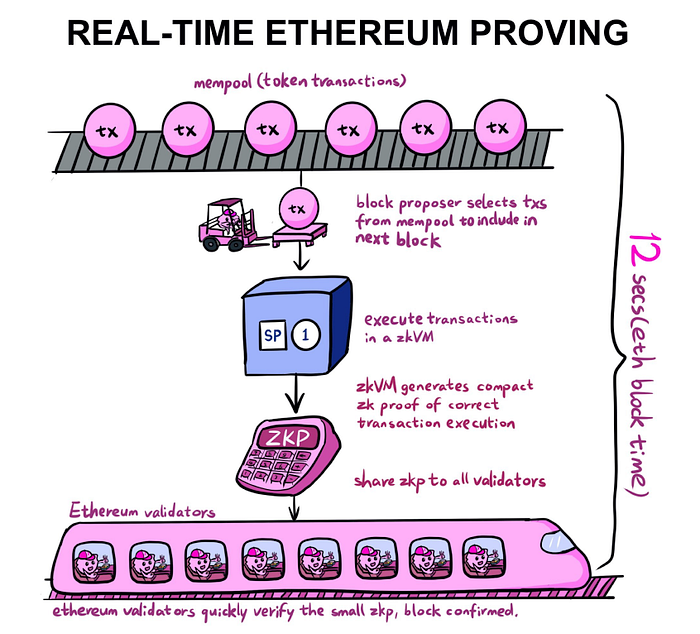 “实时证明”意味着生成接近实时体验的证明。更具体地说,是指在 Ethereum 环境中的 12 秒区块时间内生成证明。为什么在 12 秒区块时间内生成证明很重要?
