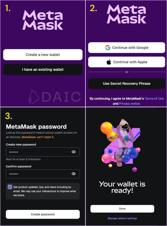 如果你还没有钱包,MetaMask 是标准的选择。以下是设置它的简单指南。
