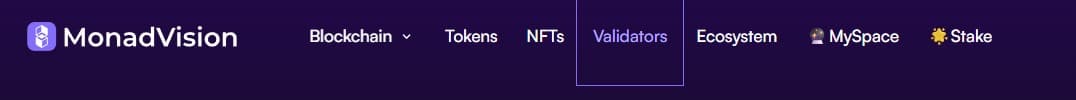 2. 连接钱包后,你的下一步是找到一个值得信赖的验证者来处理你的 stake。在顶部导航菜单中,选择 “验证者”