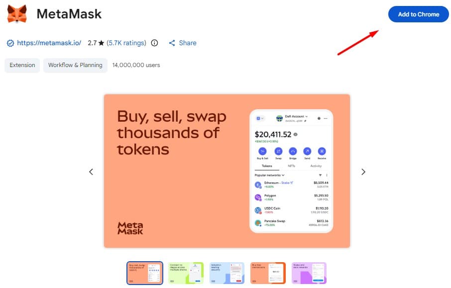 转到 Metamask 的官方 网站 并安装浏览器扩展程序。