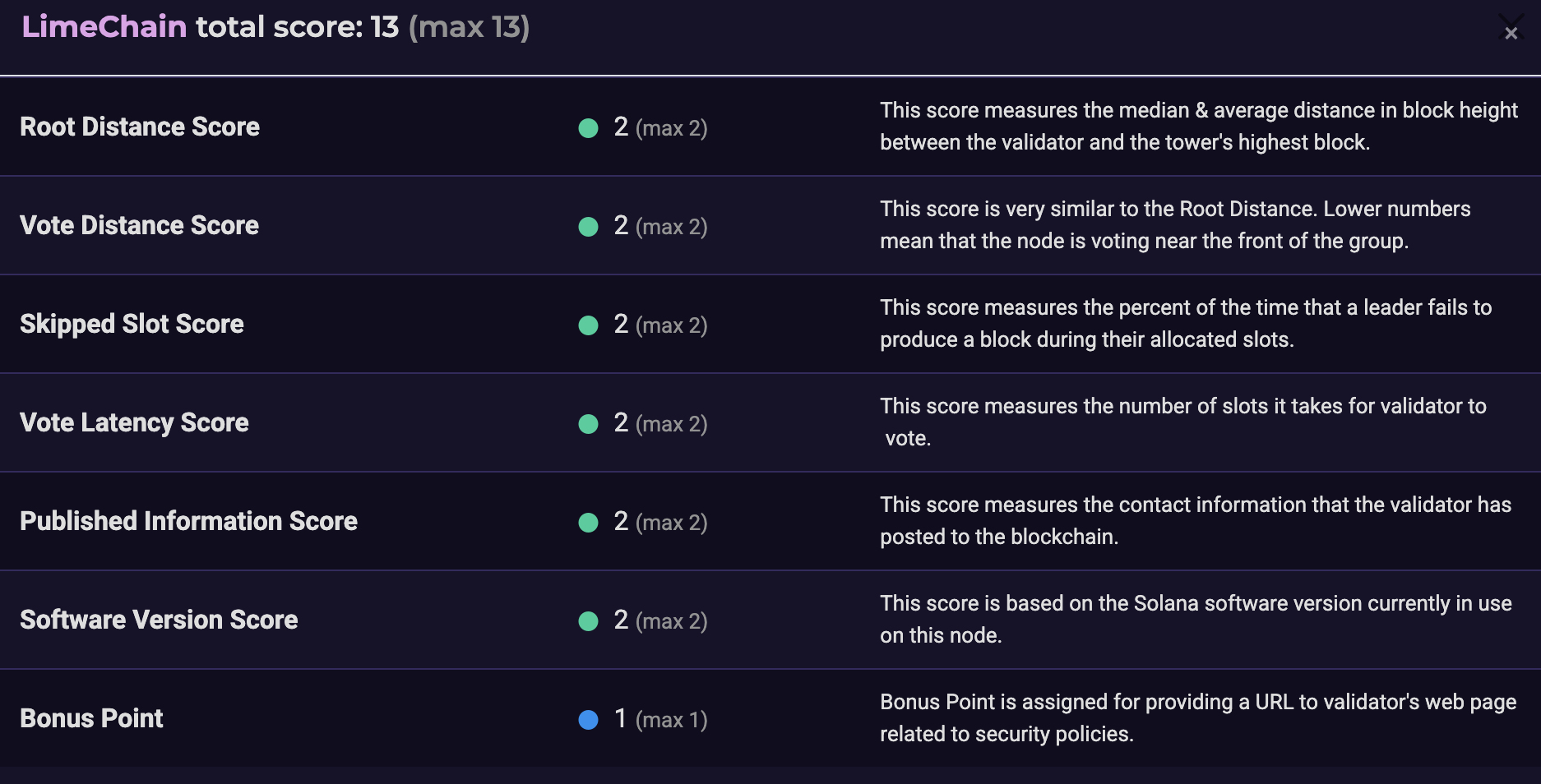 我们致力于实现高性能。我们的节点已经在独立的分析工具 validator.app 上获得了最高分。这证明了我们的工程团队致力于运行安全且高效的节点。