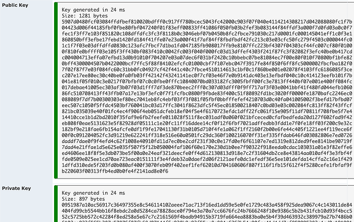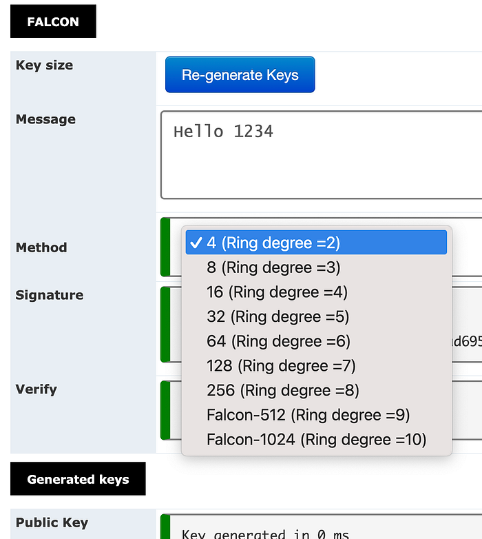 总的来说,我们需要 Falcon-512 的环度为 9,公钥为 1,281 字节,私钥为 897 字节: