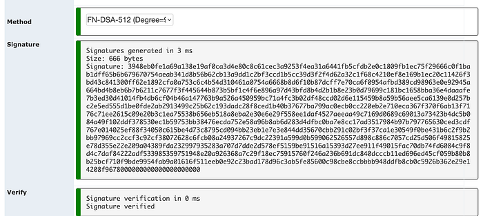 我们可以看到签名和验证相当快,并且密文是 666 字节。