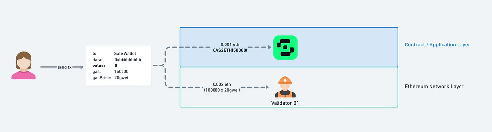 有了 GAS2ETH 之後可以將要付給「合約層」的費用,跟原生的交易手續費合併在一起,透過 gas 支付。