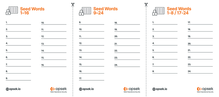 这里有一种安全的方法来使用手动 Shamir 拆分你的 seed:建议将每一部分存储在 3 个不同的国家或地点的安全位置。例如,一个可以在银行的保险箱里,另一个在你奶奶家的书里,第三个在公证人那里。 目的是避免单点故障,并确保你可以使用 3 个部分中的任意 2 个来恢复你的 seed。