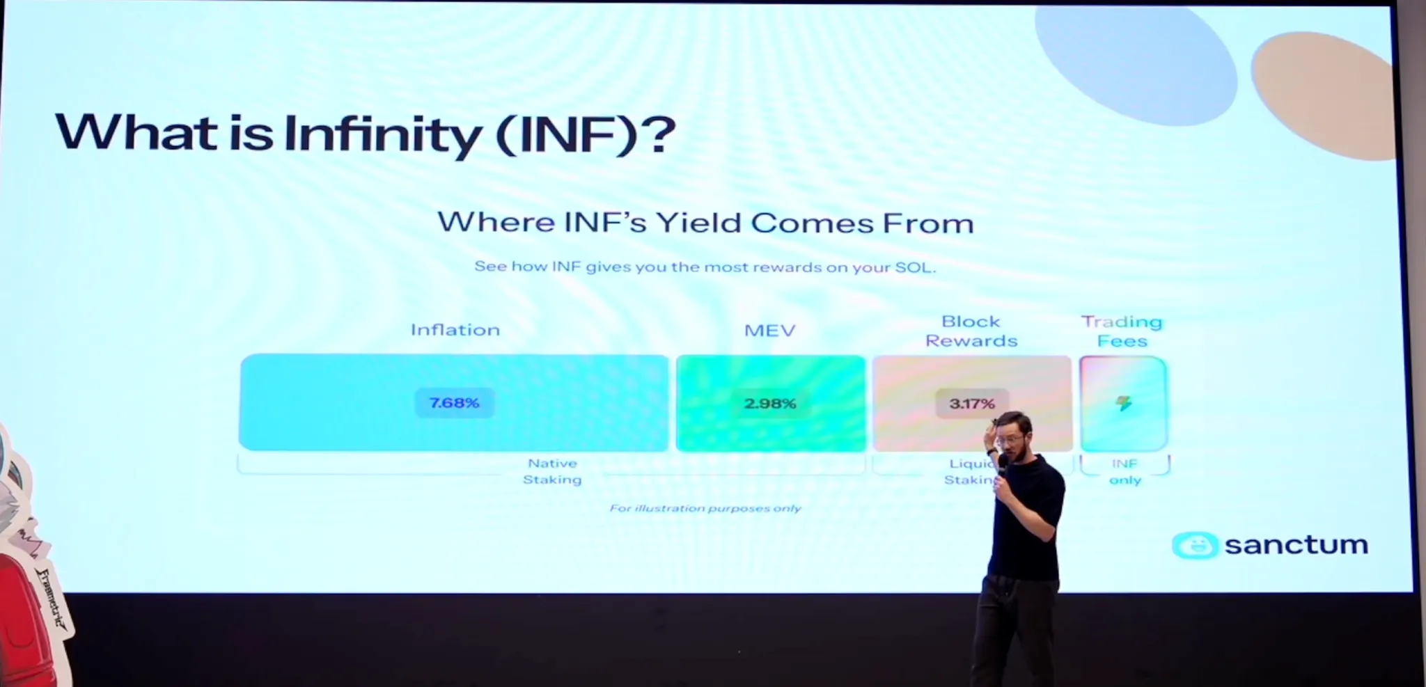 Sanctum 的旗舰产品 Infinity (INF) 是一种多 LST 流动性篮子,可将各种 LST 聚合到一个可交易的池中。用户可以存入 SOL 或 LST 以接收 INF 代币,其价值来自不同 LST 之间产生的交换费用。INF 的表现一直优于 mSOL 和 jitoSOL 等主要 LST,并且 Sanctum 的模型创造了一种飞轮效应,随着 LST TVL 的增加,流动性会加深。在此结构的基础上,Sanctum 也在扩展到机构 staking 产品和相关的金融衍生品。