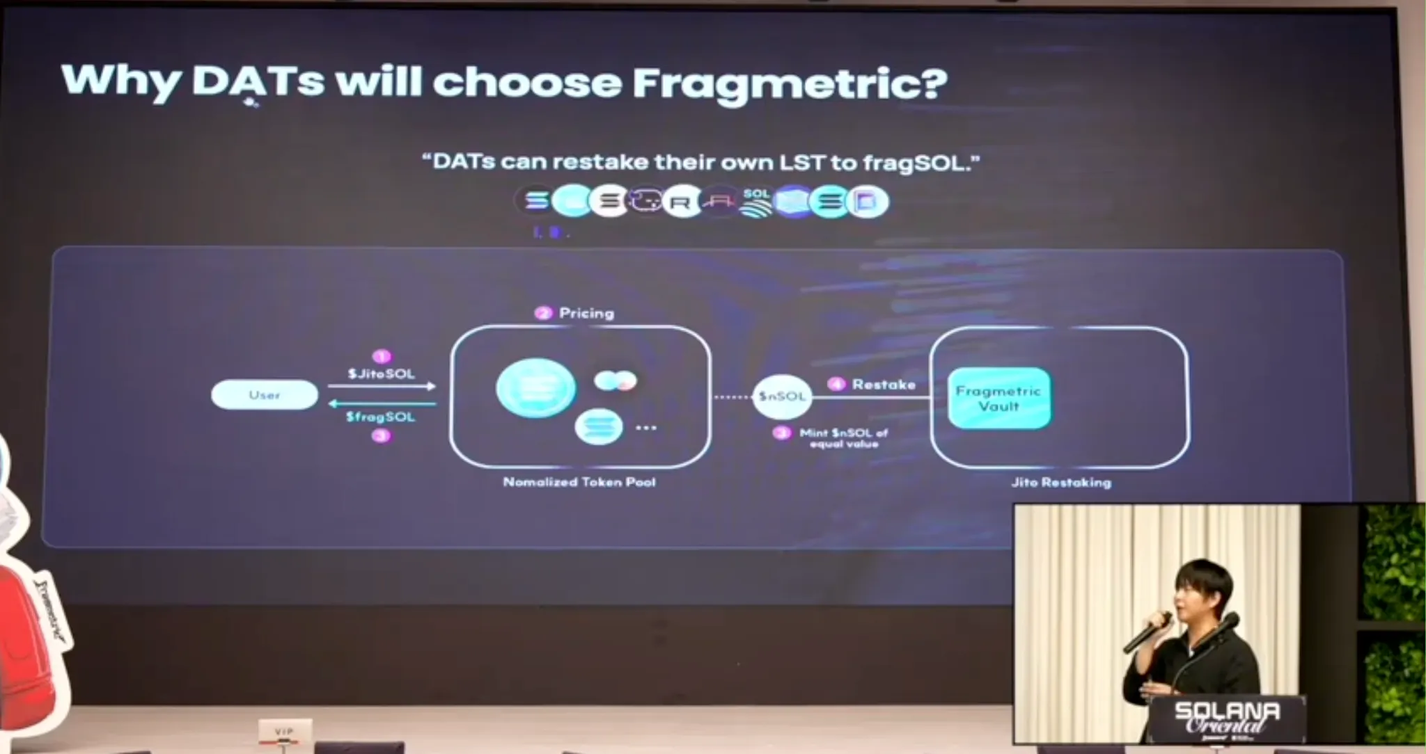 正如 Sang 在演示中所提到的,鉴于韩国强大的构建者生态系统、充满活力的投资环境以及不断增长的机构兴趣,它代表着一个具有巨大加密货币增长潜力的市场。在这种背景下,Fragmetric 凭借其对 Solana 生态系统的深刻理解以及利用最活跃的 DeFi 格局之一的能力,正在韩国开展一项基于 Solana 的 DAT 计划,这尤其具有意义。Fragmetric 与 DFDV 一起发展的轨迹可以作为 DAT 日益普及的一个有价值的案例研究——提供关于区域战略、治理结构和运营执行如何塑造这种框架在不同生态系统中的有效性的见解。