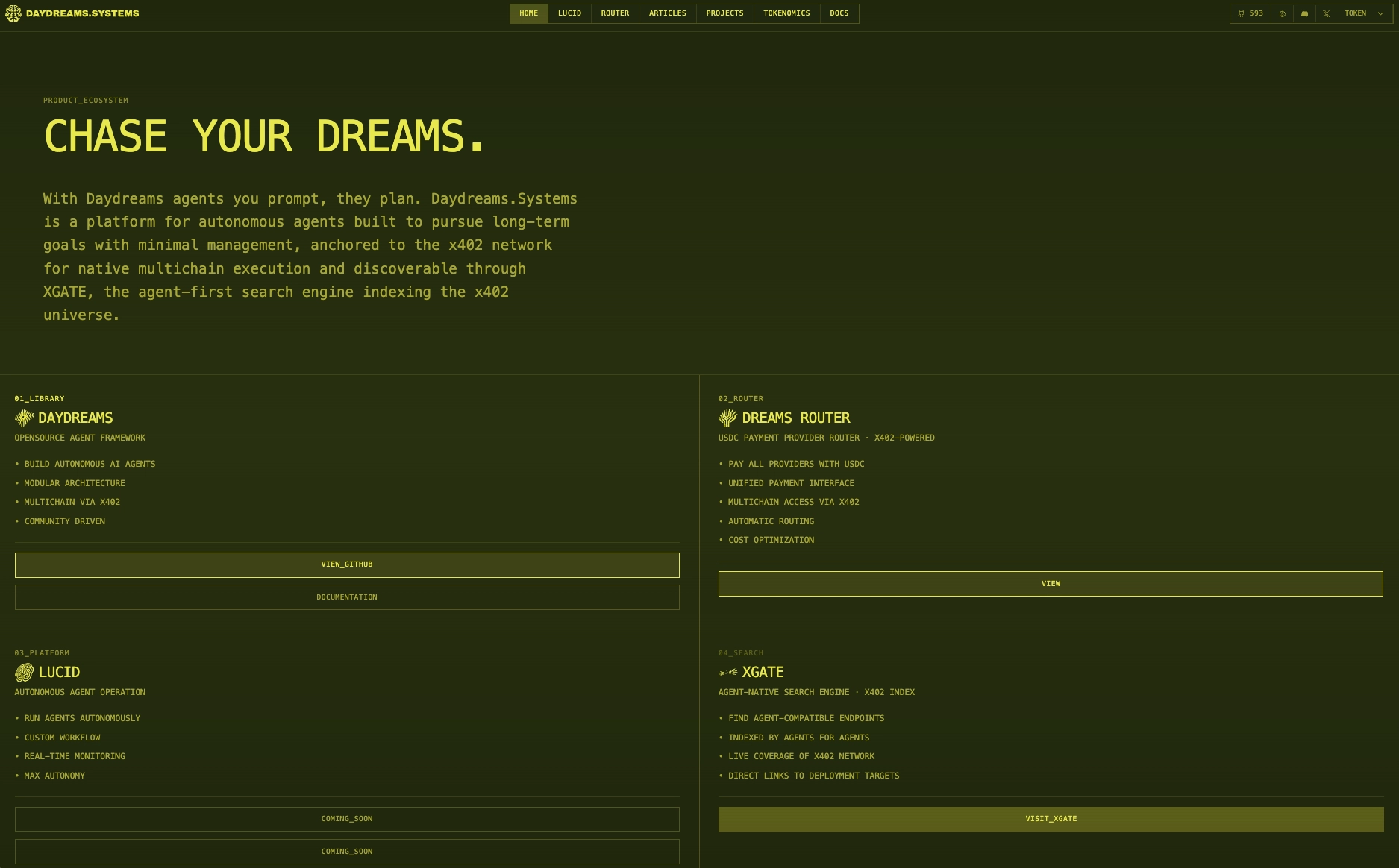 Daydreams (@daydreamsagents) 是一个专门针对 x402 支付优化的有状态代理框架。如果 OpenClaw 是一个通用代理操作系统,那么 Daydreams 则是一个在框架级别优化代理赚钱和花钱行为的项目。