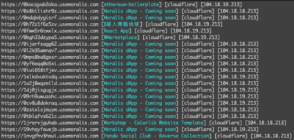 于是我们遍历和查询 usemoralis.com 的子域名,发现共存在 3 千多个相关子域站点部署在 cloudflare 上。