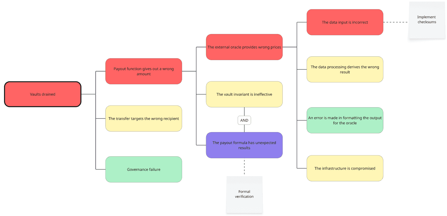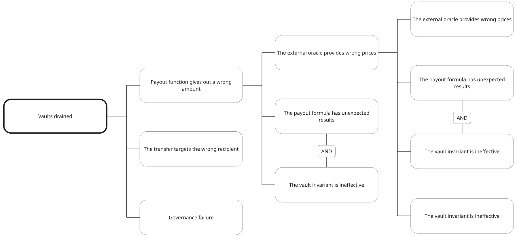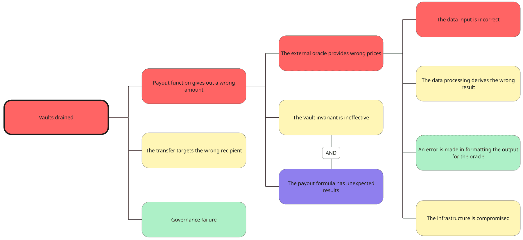 例如,你可以说外部预言机下的数据处理中的故障会导致外部预言机向支付函数提供不正确的数据,这可能导致池被耗尽。