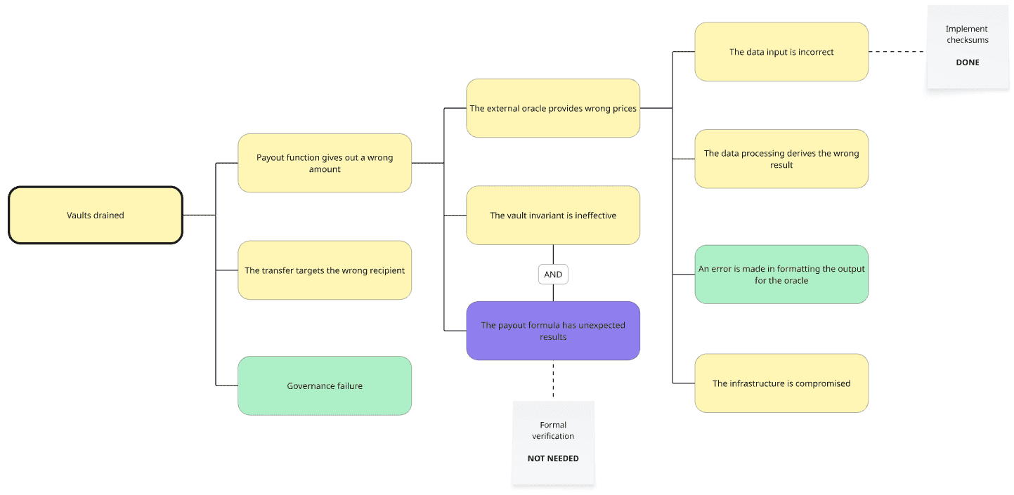 但是,我们知道紫色叶子与黄色叶子进行了 AND 运算,因此我们不需要该缓解措施。似乎如果我们实施校验和,我们将达到所需的风险水平。这是生成的树: