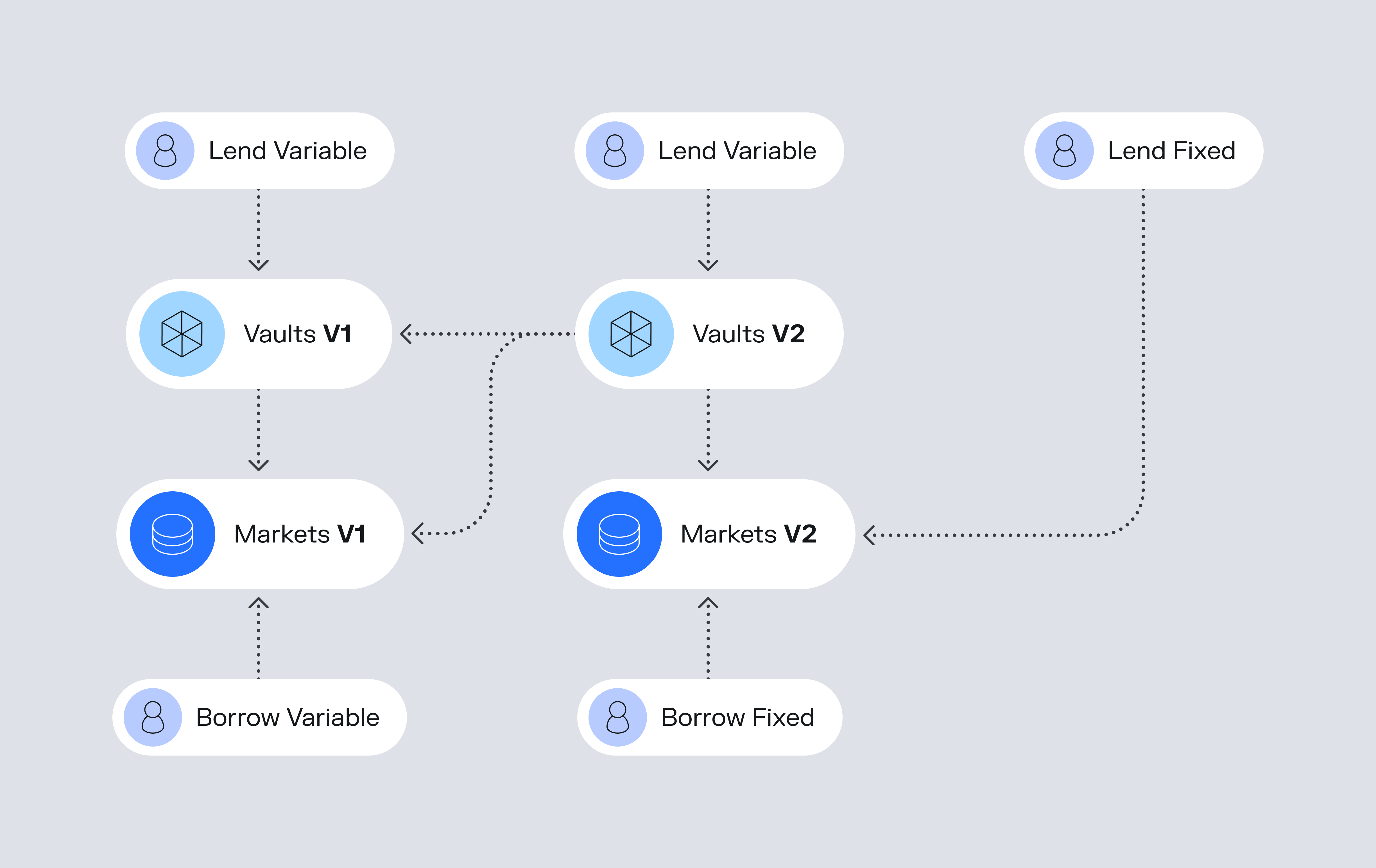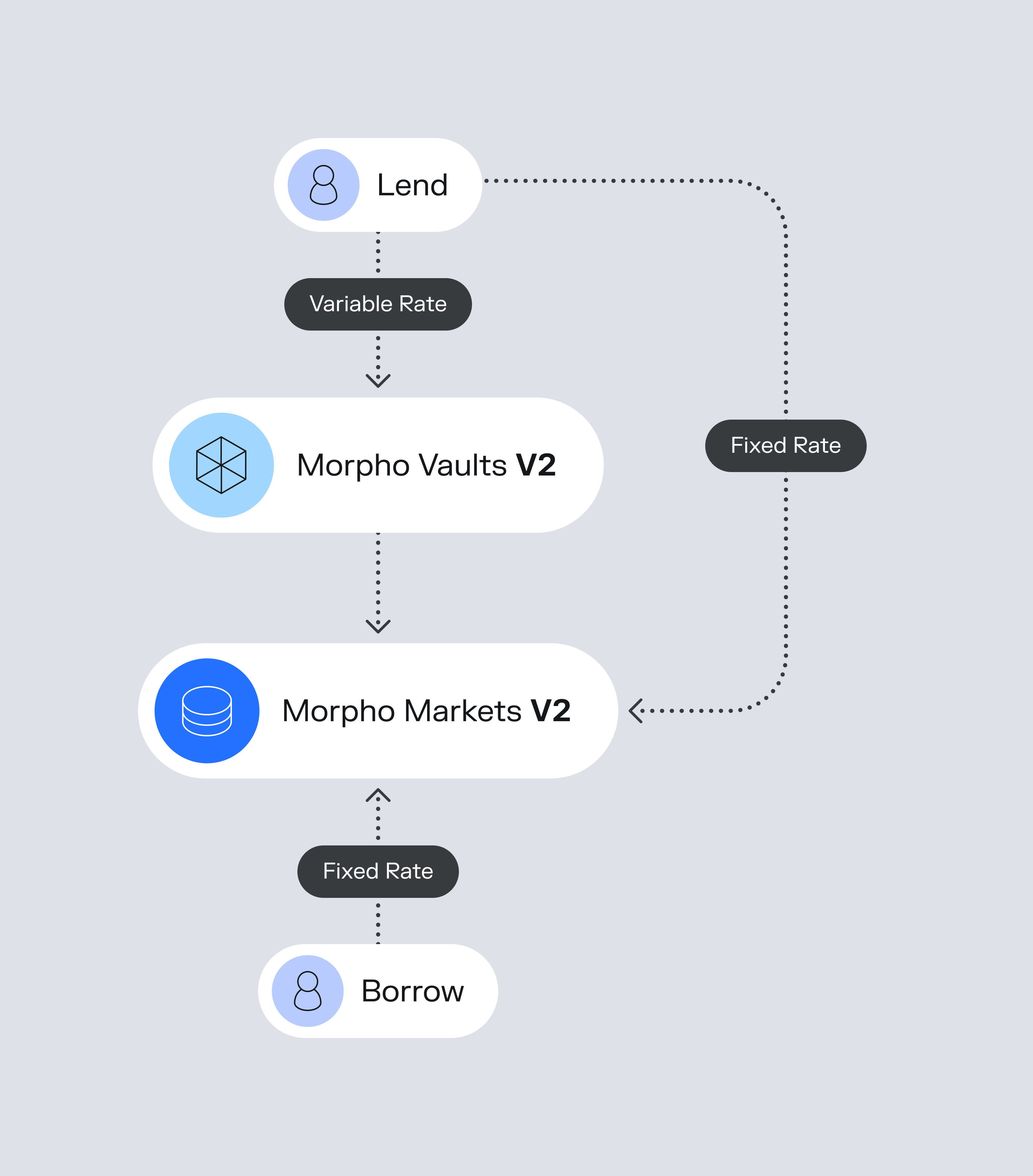 Morpho V2 旨在补充而不是替代 Morpho V1。它们共同创建了一个协同生态系统,用户可以在其中选择他们喜欢的方法——固定或浮动利率、特定期限或即时流动性、最小或定制市场。