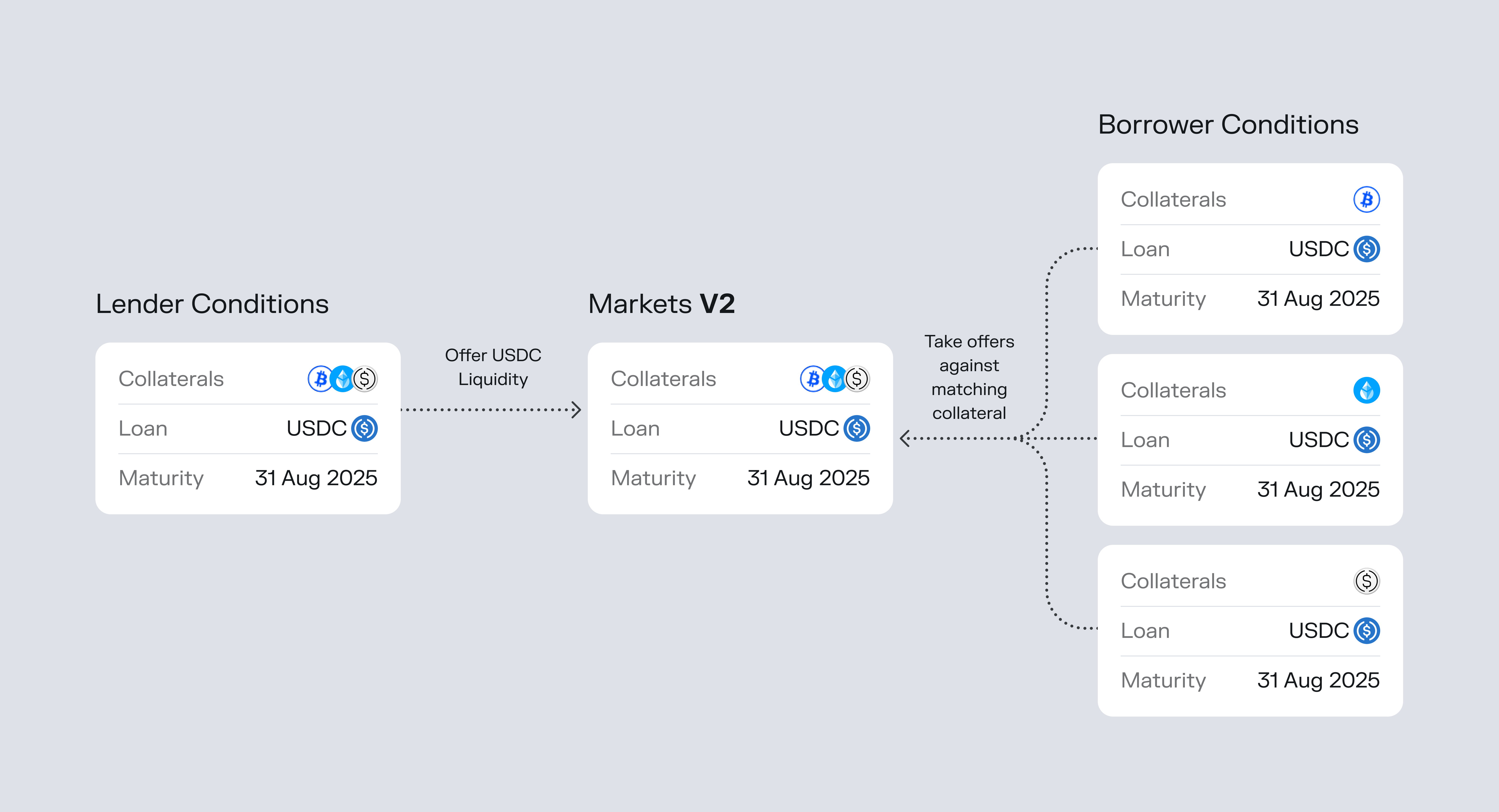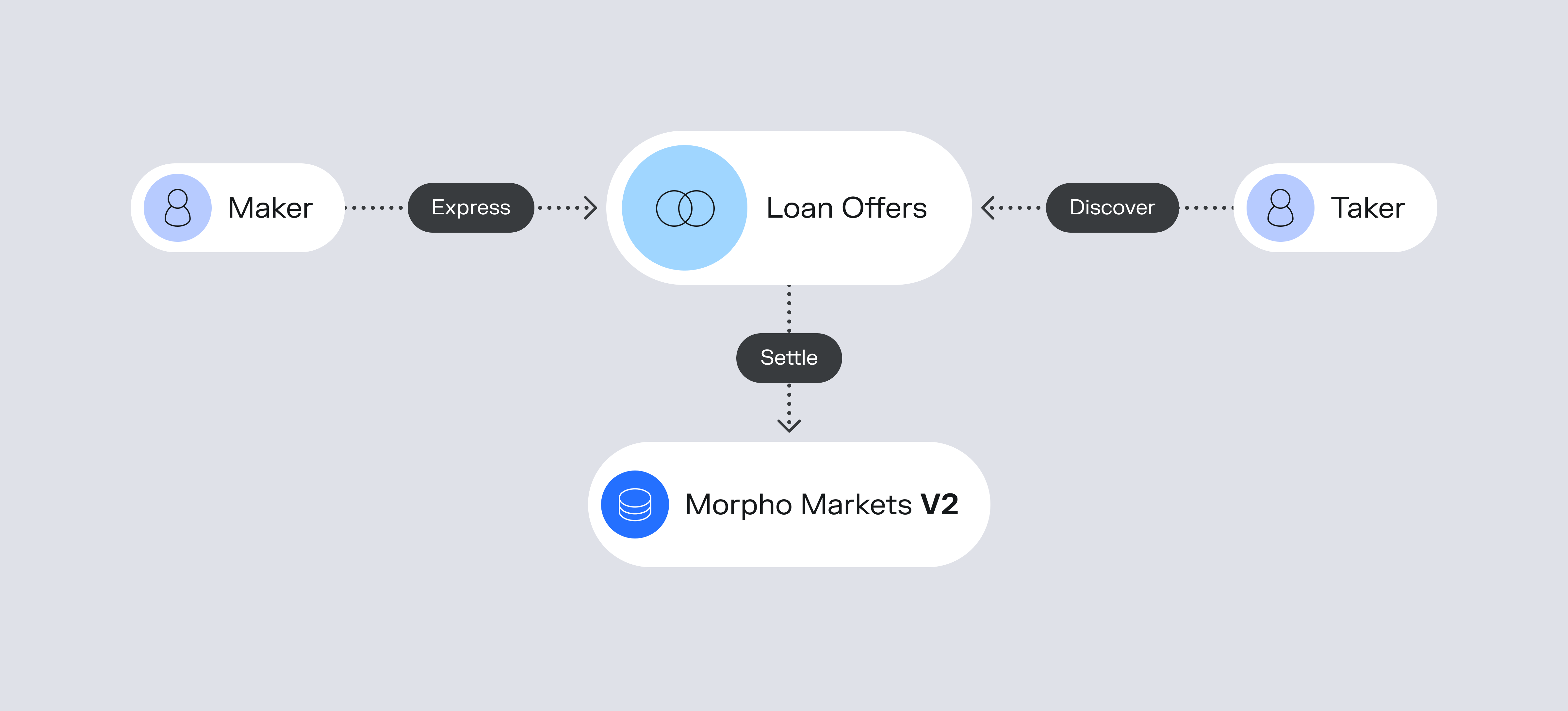 Morpho Markets V2 是一个用于点对点贷款的基于意图的原语。最初,该系统将促进具有可自定义参数的固定利率、固定期限贷款,但可以对其进行扩展以支持其他贷款类型。