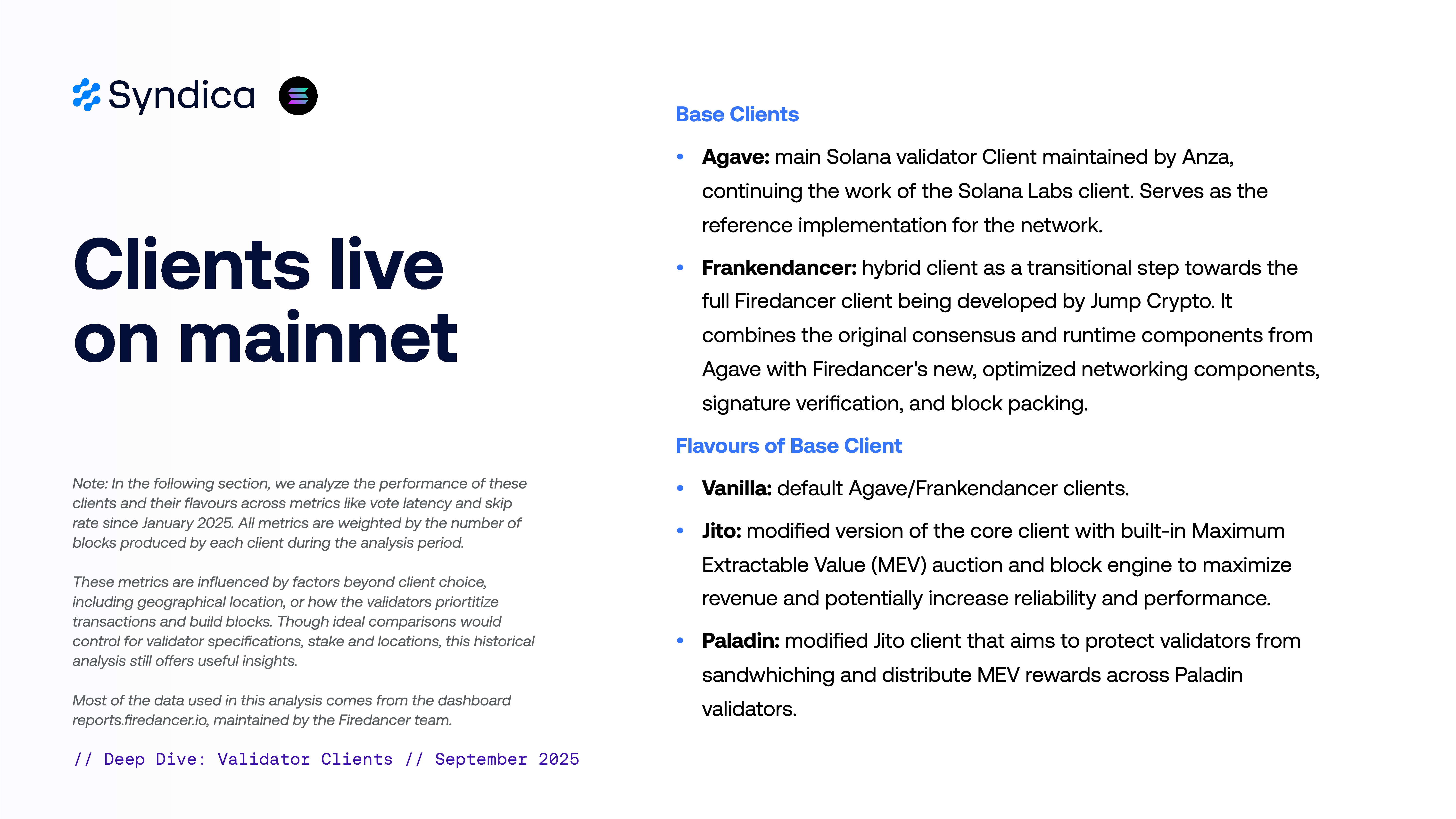 这表明 Frankendancer 提供了一个基线优势,但使用任何客户端的卓越验证者都可以表现出色。
