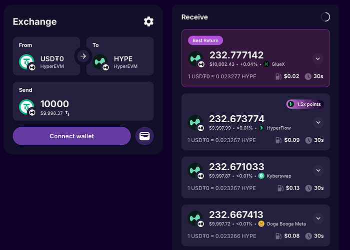借助 LI.FI 的 API、SDK 和小部件,构建者可以接入来自跨链和协议的流动性,并将其直接引入他们的 Hypleriquid 应用程序。