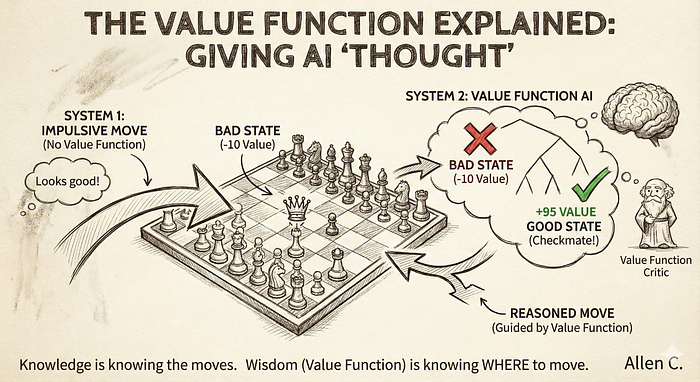 要理解价值函数 (The Value Function),请忘记“下一个 token 预测”。想想国际象棋。