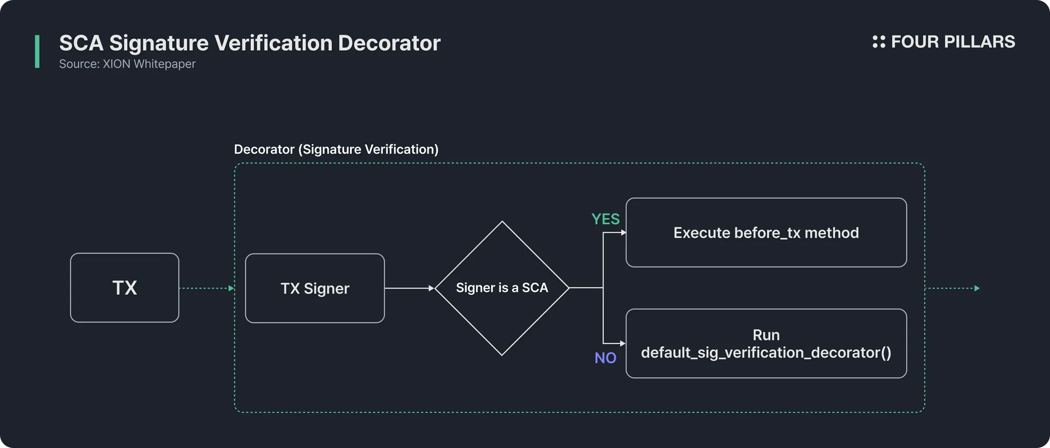 XION 通过采用与曲线无关的架构消除了这种限制。除了标准的 Web3 签名方案外,它还支持 Web2 身份验证技术,例如 Apple 的安全区域、Android 的 Secp256r1 和 通过 JSON Web Tokens (JWT) 的 RS256。单个元账户最多可以支持 256 种不同的身份验证方法。