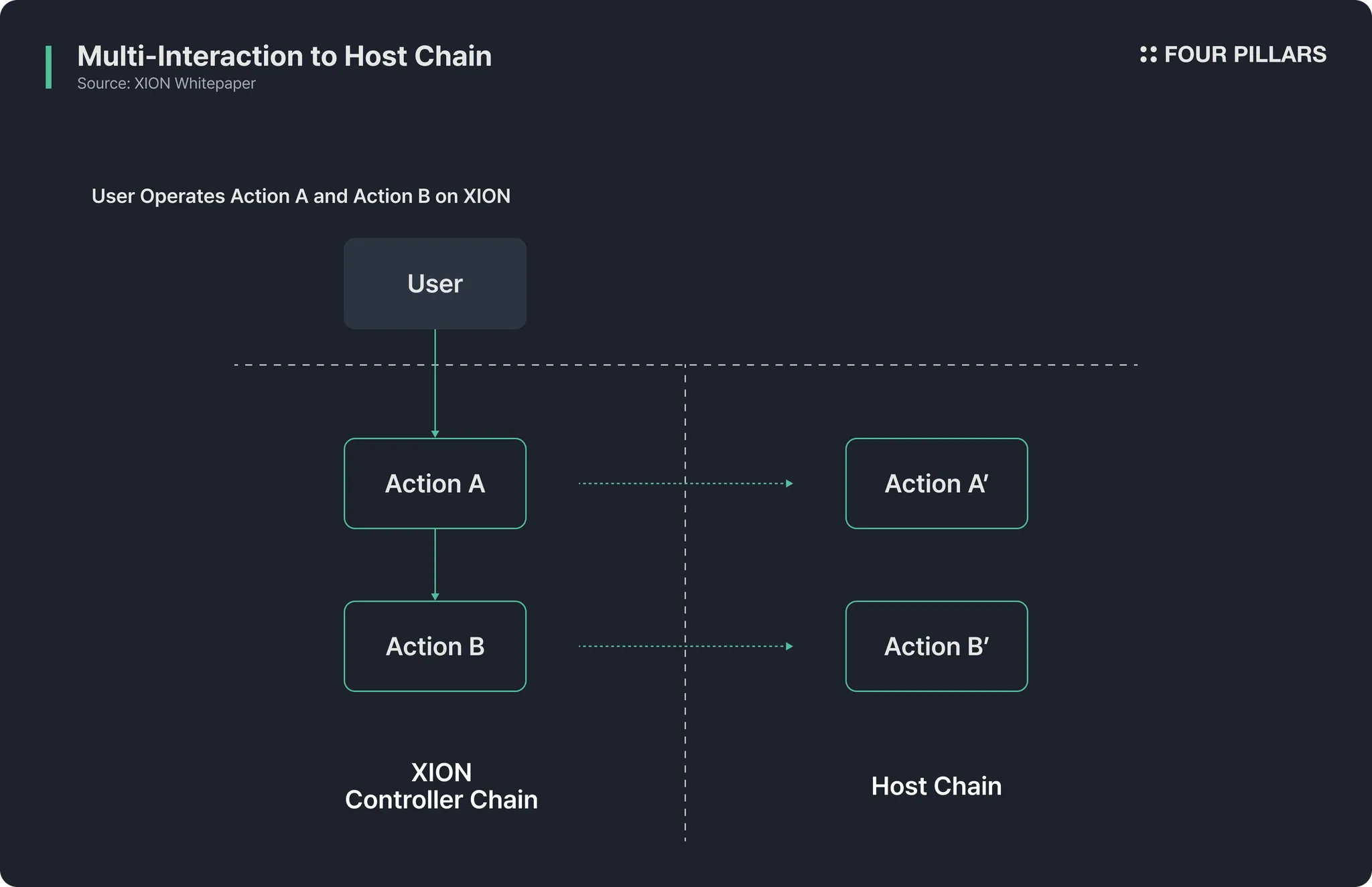 XION 的通用抽象超越了单个区块链——将其无缝的用户体验带到每个连接的链。用户可以将 XION 视为其控制器链,在其他区块链(主机链)上执行操作,同时继续通过 XION 简单直观的界面进行交互。这种方法消除了多链世界的核心挑战之一:帐户碎片化,用户必须管理跨各种链的不同帐户。