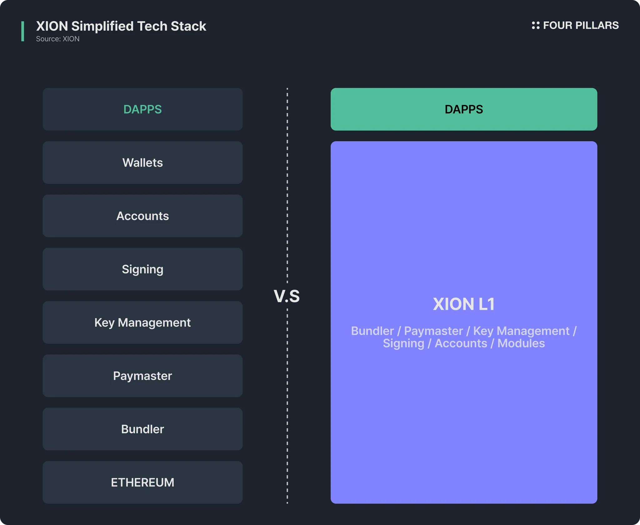 XION 采用了一种不同的方法,即将所有这些功能直接集成到协议中,提供一个真正简化的技术堆栈。开发人员不再需要拼凑外部工具;他们可以完全专注于应用程序逻辑,而基础设施可以开箱即用地处理账户抽象、签名、费用等。这降低了开发人员的门槛,并确保了用户更流畅、更一致的体验。