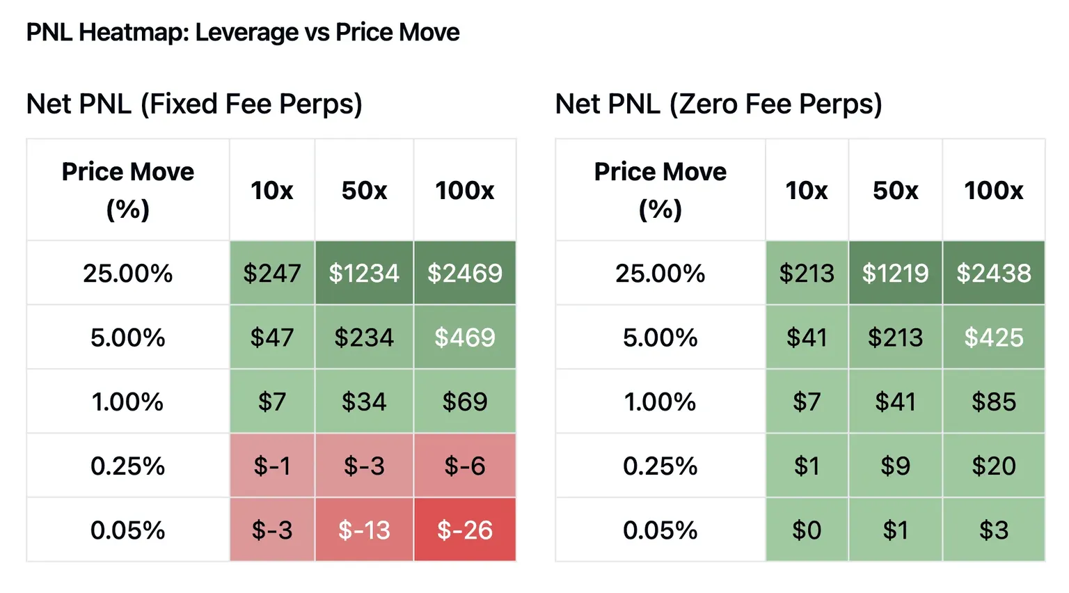 这为交易者提供了两个选项:固定费用或 ZFP。两者本质上都不是更好的。最佳选择取决于波动性、杠杆和交易持续时间等因素。Avantis 通过定量模拟对这两种模型进行了广泛的测试。