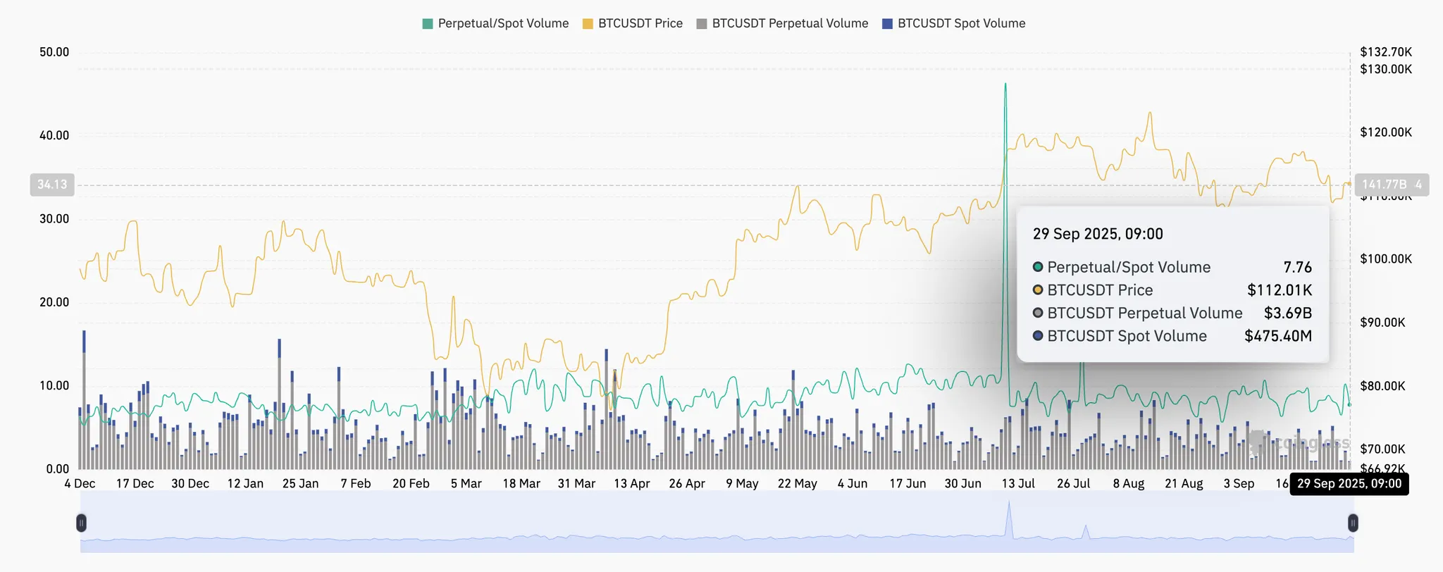 永续合约占所有加密货币交易量的约 74%。截至 2025 年 9 月,仅 BTC 永续合约交易量就大约是每日现货交易量的 8 倍。事实上,大约 88.6% 的 BTC 每日交易量发生在永续合约市场。 尽管存在巨大的机会,但仍然没有投资者可以 24/7 自托管交易股票的链上永续合约市场。