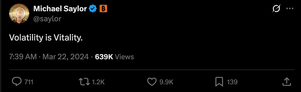 例如,由于市场流动,MSTR 的股价和 BTC 的价格经常出现分歧,从而产生溢价或折扣。交易者可以通过做空被高估的资产并做多被低估的资产来进行配对交易,从而利用这种短期错位。MicroStrategy 的董事长 Michael Saylor 甚至将 MSTR 描述为“波动引擎”,强调了可以从其波动性中产生的额外价值。