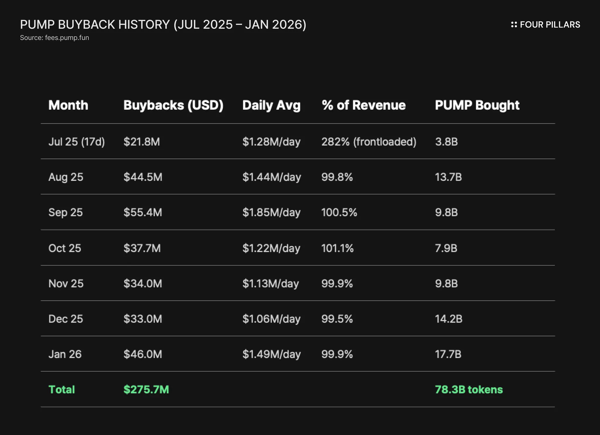 自 2025 年 7 月 15 日以来,大约 100% 的协议收入都用于公开市场 PUMP 回购,每天都可以在 fees.pump.fun 上验证:
