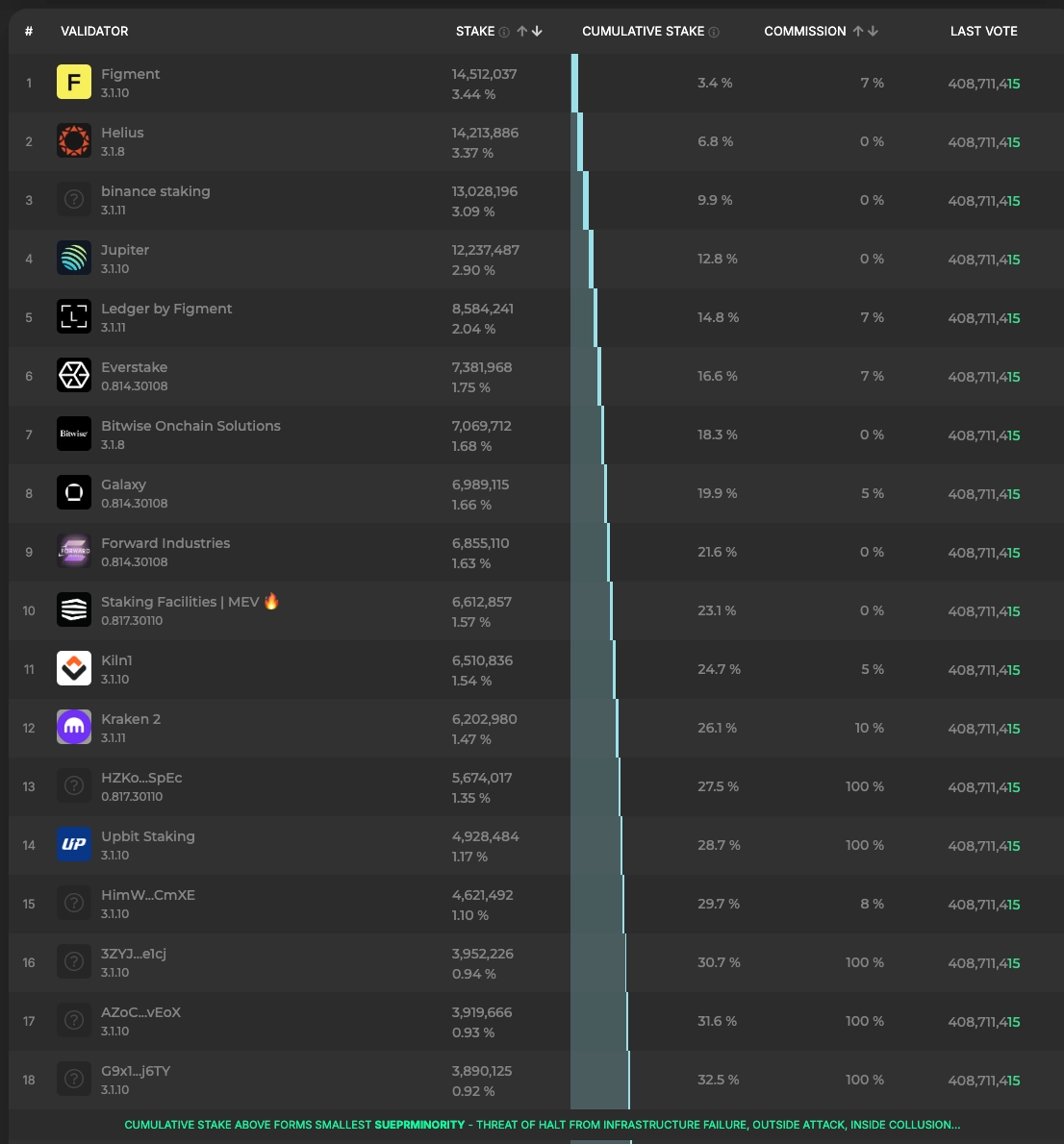 该机制旨在抑制垃圾邮件并理性分配网络资源。然而,截至 2026 年 3 月,Solana 33% 的质押集中在仅 18 个验证者中。由于 SWQoS 优先级直接反映了这种权益集中度,用户和 MEV 搜索者从通过高权益大型验证者路由交易中获得结构性收益。